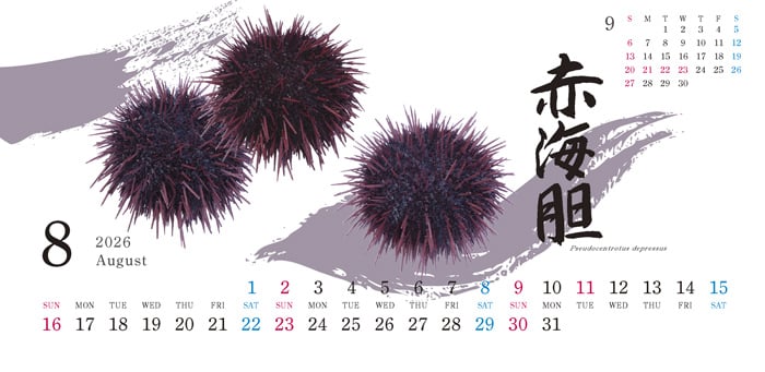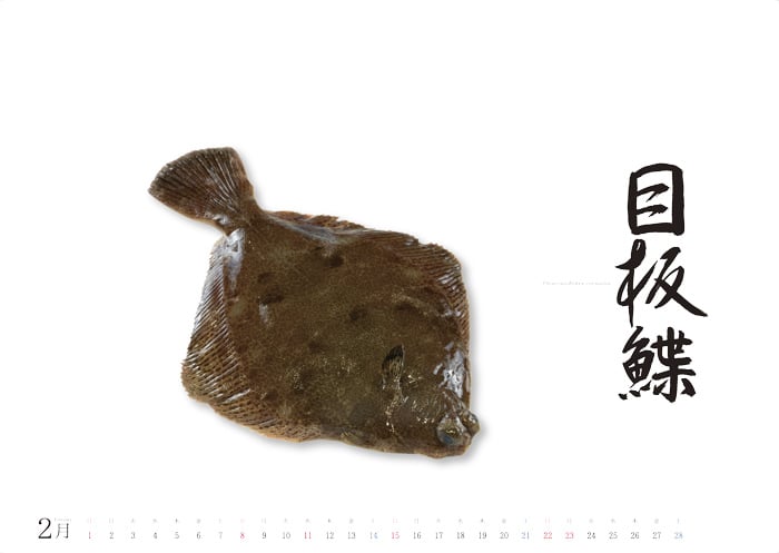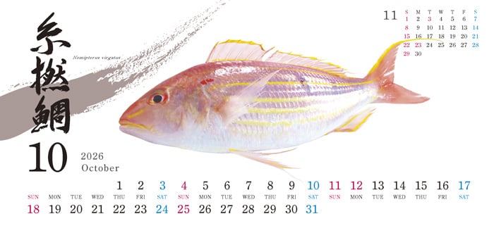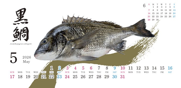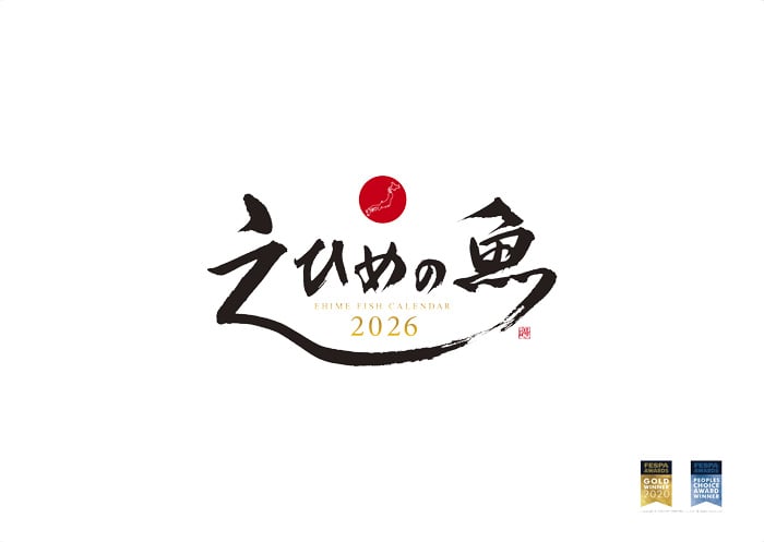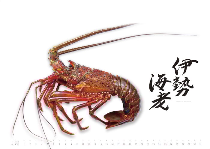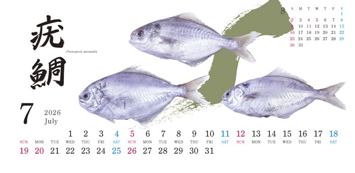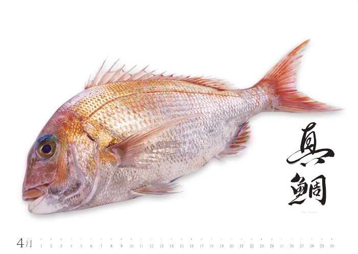 カレンダーは筆模様にメタリックをあしらった仕上がりで、魚をより際立たせました。