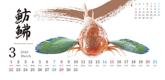 2026年のカレンダーはA2横サイズです。縦長から横長サイズに変更することでより魚をダイナミックに表現でき、“観て”驚き、“触れて”楽しむ、そんなリアルをより体感できるカレンダーに仕上がりました。
