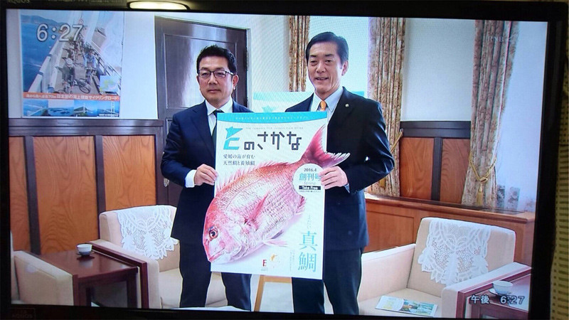 そんな中、2015年(平成27年)6月に愛媛県農林水産部水産局の中矢惠介局長(故人)と出会いました。局長に「愛媛で魚の情報誌を作りたいんです!」と私の想いをぶつけると、「ぜひやってください。専門知識は提供します」とその場で協力を快諾してくださいました。すぐに佐味社長に連絡し、「能登に負けない豊かな海がある愛媛で、『Fのさかな』と同様のフリーペーパーを発行させていただきたい!」と伝えたところ、「分かりました。一緒に全国に“さかな文化”を広げましょう!」という心強いお言葉をいただきました。