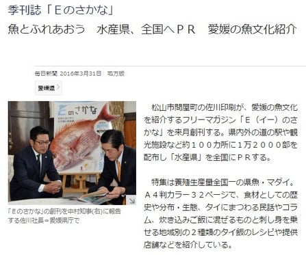 愛媛)無料雑誌「Eのさかな」発刊へ 松山の印刷会社