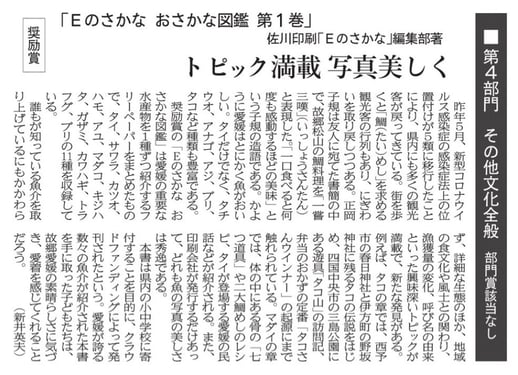 愛媛の出版文化振興のため、優れた出版物を顕彰する「第39回愛媛出版文化賞」にて、