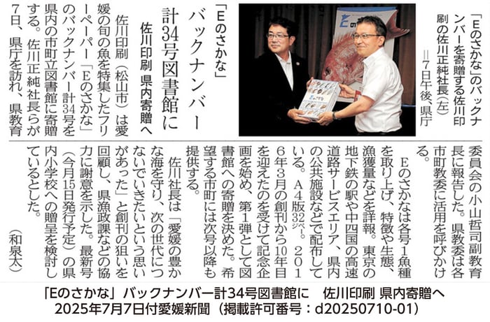2025年7月7日付『愛媛新聞』(12面)に記事が掲載されました。